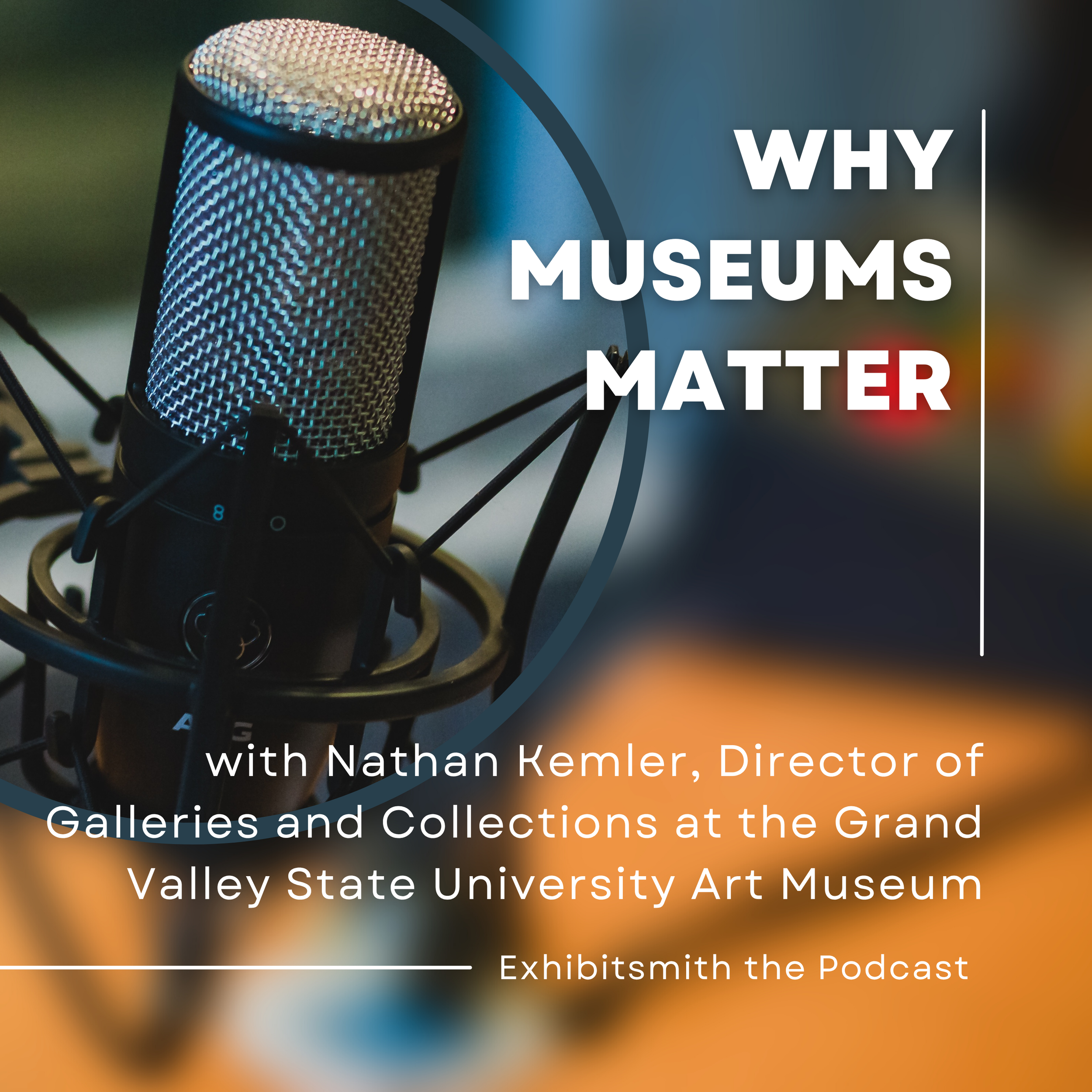 This month I’m focusing on the big question: Why Museums Matter. I recently had a wonderful conversation on the Exhibitsmith podcast with Nathan Kemler, Director of Galleries and Collections at the Grand Valley State University Art Museum in Michigan, about Why Museums Matter (and why they still matter). We talked about how museums in the 21st century can't just open their doors and expect people to visit like they could in the past. Today's museum visitors have different reasons for visiting - or not visiting - museums, and Nathan shared some of the creative, unique, and inspiring ways that he and his staff reach out to both the university community and the general public to make everyone feel invited, welcome, and seen.